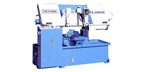 Semi-Auto Double Column Band Saw Machines for cutting metal rods and bars, variable speed.